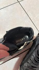 Sneakers originali CRIME da uomo, taglia 43, in pelle nera con suola bianca.