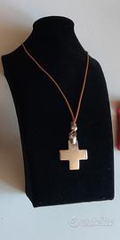Croce in Argento Dodo by Pomellato con collana in cuoio. Si fornisce anche packaging completo