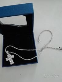 Catena con croce Swarovski fuori produzione, con cristalli sul davanti della croce e nell'aggancio.