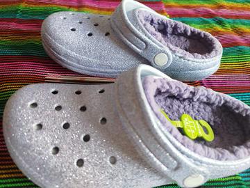 Crocs Zoccolo Classico Foderato Glitterato K, Unisex-Bambini e Ragazzi. Colore: Glitter Satinato Taglia: 34/35 EU