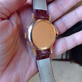orologio crono marca delbana in oro 18k movimento landeron a carica manuale diametro 38mm
