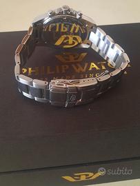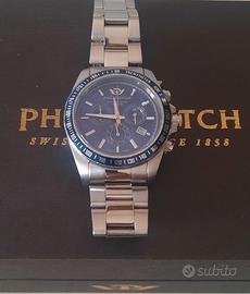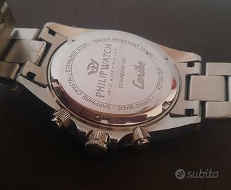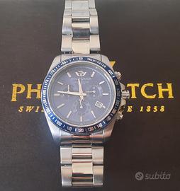 Cronografo Philip Watch ORIGINALE modello Caribe Cassa 42 mm. Corona e Fondello a vite.10 Atm. Sub 100 m. Vetro Zaffiro. Quadrante Blu. Completo di scatola come foto. Ottime condizioni. Perfettamente funzionante in tutto. Cinturino con tutte le maglie. Anche per polsi Grandi. NON VENDO A MENO DEL PREZZO RICHIESTO. Philip Watch - Tissot - Bulova - Mondia - Altanus - Sector - Breil