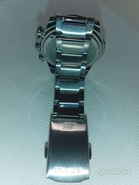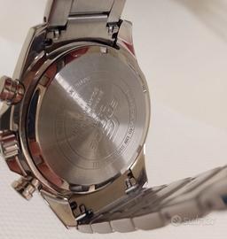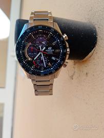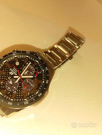 Spettacolare cronografo solare Casio sapphire edifice uomo acciao massiccio water resistente, elegante sportivo, quadrante nero lancetta secondi e icona rosse, cinturino con bottone per apertura facile e pratico maglie larghe e massicce,. Nuovo non ricondizionato!!!