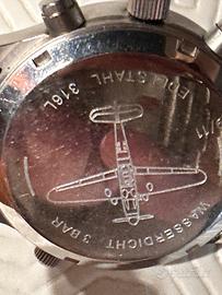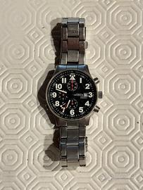 Cronografo originale Astroavia con allarme, numeri ad altissima VISIBILITÀ, cronometro, datario. Impermeabile fino a 30 mt. Cassa in acciaio da 40 mm. Cinturino in acciaio con maglie di ricambio. Buone condizioni. Normali segni di usura. Baterie da sostituire.