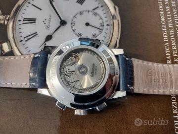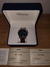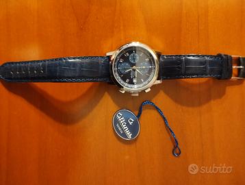 Orologio automatico Altanus Master referenza 7769. 43mm. Movimento svizzero ETA Valjoux 7750. Tiene benissimo il tempo ed è in condizioni pari al nuovo. Vetro zaffiro. Scala tachimetrica. Cinturino originale in pelle come nuovo. corredo completo Il valore a nuovo dell'orologio ai primi anni 2000 era superiore agli 800 euro. Orologio di grandissima qualitá. Da vedere di persona. Vendo perché troppo grande per il mio polso. cortesemente, evitare offerte ridicole.