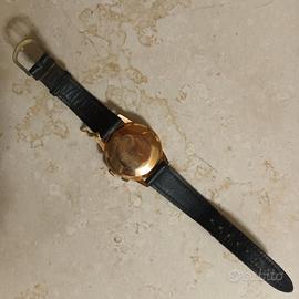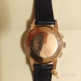Il modello monta un ottimo Landeron 248, 17 rubini, 18.000 alternanze/ora, 41 ore di riserva di carica, correttamente funzionante sia nella parte tempo che nella parte cronografo. Esteticamente è in ottime condizioni, il quadrante non ha subito ristampe e la cassa, benché vissuta, ha la sua doratura originale. Cinturino aftermarket in pelle color marrone nero con cucitura orizzontale intonata alla pelle leggermente usurata.
