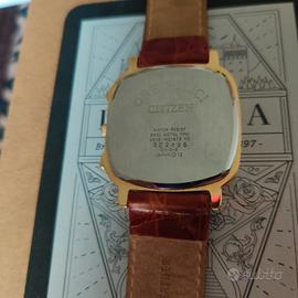 Cronografo Citizen Chronograph di forma quadrata, in ottime condizioni con dedica sul fondello, al quarzo ben tenuto, con cinturino in pelle.