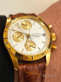 cronografo Eberhard champion anni 90 in oro 18 kt perfettamente funzionante,tutto originale 36 mm prezzo 5000 euro non trattabile consegna a mano in tutta la Sicilia.