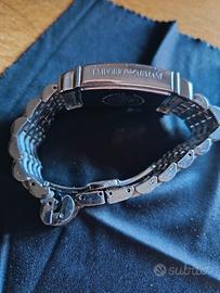 Belllissimo Cronografo rettangolare vintage Emporio Armani, mod. AR-0294, con uno stupendo cinturino in acciaio che subito al tatto conferisce robustezza.