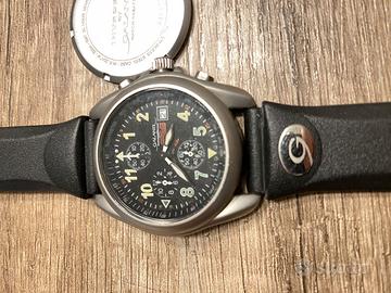 NON FUNZIONA - PER RICAMBI MOVIMENTO MIYOTA Cronografo, marca Galanti, modello Invader, referto. 983. 3 quadranti, datario, numeri fosforescenti, cassa titanio o simil/titanio, cinturino in gomma. Movimento al quarzo. Ritiro a Milano.
