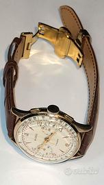 Un cronografo Monvis con movimento Landeron 248 è stato prodotto principalmente tra gli anni '50 e gli anni '70. In particolare, il movimento Landeron 248 è stato molto popolare tra gli anni '50 e gli anni '60. Quindi, un orologio Monvis con questo movimento è probabilmente da collocare in uno di questi decenni. Il cronografo, fatto controllare da un bravo orologiaio, è in ottimo stato e il movimento è perfetto. Ha una leggera scalfitura sul vetro ma ciò non inficia per nulla l'oggetto ne infastidisce il quadrante. In ogni modo il vetro è facilmente reperibile e, se si vuole, sostituibile.