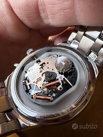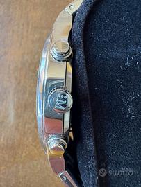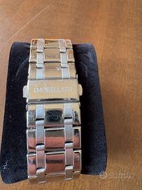 Vendo elegante orologio da uomo Morellato, modello cronografo appartenente alla serie Ravello (simile al modello SDL021). L'orologio si presenta con un design sportivo e raffinato, perfetto per ogni occasione. Caratteristiche principali: Movimento: Al quarzo di alta precisione. Funzioni: Cronografo con tre sotto-quadranti (secondi, minuti e indicazione 24 ore). Quadrante: Nero testurizzato con numeri arabi grandi e ben leggibili, lancette luminescenti e sfera dei secondi rossa per un tocco di sportività. Lunetta: Tachimetrica fissa per il calcolo della velocità. Materiale: Cassa e bracciale in solido acciaio inossidabile. Chiusura: Deployante con pulsanti di sicurezza. Condizioni: L'orologio presenta 2 lancette su 3 del cronografo rotte e il coperchio della cassa è da chiudere (incluso nella vendita).