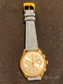 Per gli amanti dell’orologeria d’epoca, propongo in vendita un raffinato cronografo Vetta degli anni ’60 in oro 18K (750), dotato di prestigioso movimento Valjoux R23 a carica manuale.