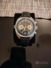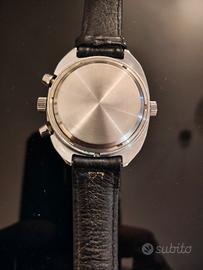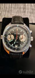 Cronografo Poljot 3133 Sovietico (USSR) – Ottime Condizioni Descrizione Vendo cronografo Poljot, pezzo dell'orologeria sovietica degli anni '80, animato dal calibro 3133 a carica manuale (derivato dal celebre Valjoux 7734 svizzero). L'orologio è un vero pezzo vintage originale dell'era USSR (scritta a ore 6), non una riedizione moderna, il che ne garantisce l'alto valore collezionistico. Movimento: Calibro 3133, 23 rubini, robusto e affidabile. Cronografo perfettamente funzionante, data a ore 6, scala telemetrica e lunetta interna girevole (tramite corona a ore 9). Quadrante: "Reverse Panda" nero con contatori argentati, in condizioni estetiche eccellenti. Cassa: In acciaio, conservata magnificamente con spigoli vivi, mai lucidata per preservarne l'originalità. L'orologio marcia correttamente e tiene bene il tempo. Il cronografo parte, ferma e resetta perfettamente a zero.