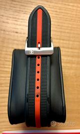 • Cinturino: Cinturino in gomma morbida, nero con la fascia centrale nel celebre Rosso Corsa.
