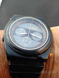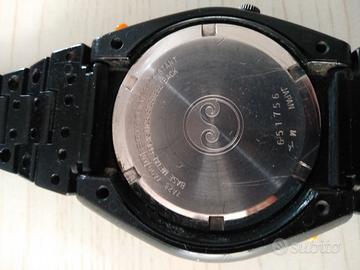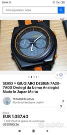 Vendo Seiko Giugiaro Design ref. 7A28 7A00 da collezione, orologio al quarzo vintage degli anni ’80, uno dei modelli più ricercati della serie 7A28, primo cronografo analogico al quarzo della storia. Pezzo raro, molto apprezzato dai collezionisti e dagli appassionati del design di Giorgetto Giugiaro. Condizioni: Funzionamento perfetto del movimento 7A28 Cronografo operativo in tutte le sue funzioni Condizioni estetiche buone, con normali segni del tempo (vedi foto) Quadrante e lancette originali Cinturino/bracciale: originale Vetro in buono stato 📏 Specifiche Referenza: 7A28 7A00 Movimento: Seiko 7A28, cronografo analogico al quarzo Anno: anni ’80 Colore quadrante: nero Design: Giugiaro Valuto scambio con bici in carbonio, misura M