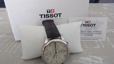 Cronografo automatico con cassa in acciaio da 42mm, vetro in zaffiro, cinturino in pelle marrone, fibbia con chiusura a farfalla, con pulsanti a fondo cassa a vista. Contatori 30 minuti e 12 ore, lancetta cronografo centrale dei 60 secondi e visualizzazione data. Movimento automatico svizzero Tissot, riserva di carica 60 ore. Vetro antigraffio. Impermeabilità fino a 5 bar. Mai utilizzato, in confezione originale integra. Certificato di originalità.