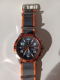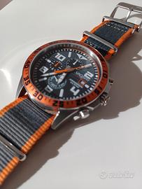 Orologio Vagary cronografo by Citizen ( solo di bellezza ), color arancione, cinturino in cordura colorato, usato pochissimo, vendo causa parecchi orologi che potete visionare sul mio profilo.