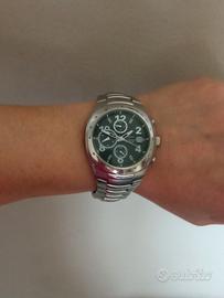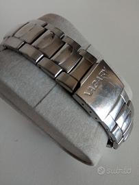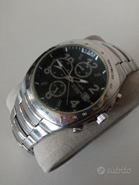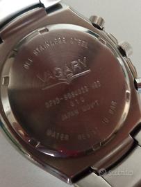Vendo splendido orologio cronografoVagary marchio di proprietà di Citizen, colosso mondiale dell'orologeria giapponese. L'orologio è stato appena revisionato per la vendita. Usato in ottime condizioni estetiche solo qualche leggero graffio.Batteria appena sostituitae movimento testato. L'orologio è stato sottoposto apulizia profonda e igienizzazione(cassa e cinturino). Quadrante nero con tre contatori, datario a ore 3, scala tachimetrica sulla lunetta. Cinturino originale in acciaio con chiusura di sicurezza. Unisex. Pronto all'uso.
