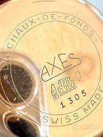 Oro 18k 37 mm Revisionato In vendita uno splendido pezzo di storia dell’orologeria svizzera degli anni '50: un cronografo AXES in condizioni spettacolari, perfetto per chi cerca un orologio vintage autentico e pronto da indossare. Caratteristiche Tecniche: • Cassa: In Oro Rosa 18k (0.750), con punzoni ben visibili. L'oro rosa dona una lucentezza calda e nobile, molto più rara della classica versione in oro giallo. • Movimento: Prestigioso calibro a carica manuale Landeron 248. Un movimento svizzero che ha fatto la storia, noto per la sua robustezza e precisione. Cronografia perfettamente funzionante: partenza, arresto e azzeramento precisi. "Extra 21 Rubis": A differenza dei classici cronografi a 17 rubini, questo modello monta la versione a 21 rubini, che garantisce una minore usura dei perni e una fluidità di marcia superiore. Incabloc: Il fatto che sia presente il sistema antiurto Incabloc lo rende un orologio "tecnico" e più robusto rispetto ai cronografi dei decenni precedenti. • Quadrante: Meravigliosa patina originale del tempo che conferisce all’orologio un fascino unico e non riproducibile. Scala tachimetrica esterna e doppi contatori. "Ferrotex": Una dicitura rara che identifica una serie di quadranti con protezione speciale dell'epoca, si riferiva probabilmente a un trattamento speciale per rendere la spirale del bilanciere meno sensibile ai campi magnetici o all'ossidazione. Era l'alta tecnologia di allora! • Cinturino: Monta un cuoio Morellato vissuto che, a mio parere, esalta il carattere "vintage d'autore" dell'orologio ma facilmente sostituibile. Un investimento che non si svaluta, ideale per chi colleziona Eberhard, Longines o cronografi svizzeri d’epoca. Disponibile per consegna a mano o spedizione assicurata. Valuto scambi su Genova con Omega, Rolex, Tudor, Tissot, Zenith #vintage #chronograph #18k #gold #landeron #omega #longines #eberhard #heuer #chronographe #oro18k #collezionismo
