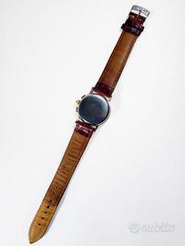 Originale e perfettamente funzionante, diametro mm 32, Ref. No. 6101 099 - 2024603 (sul fondello, ma ci vuole una lente per leggerli tanto è fine ma integra l'incisione). Lunetta oro giallo 18kt, cassa e fondello acciaio inox, cinturino rettile in buone condizioni, più cinturino originale extra nuovo.