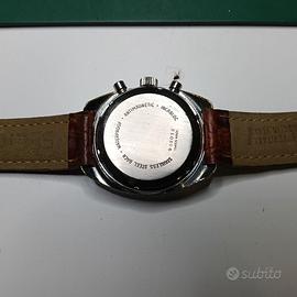 Vendita effettuata da privato. Proposto in vendita cronografo vintage Bucherer originale, risalente agli anni ’60/’70, equipaggiato con movimento meccanico a carica manuale Valjoux 7733. Il movimento è funzionante: cronografo operativo con regolare avvio, arresto e azzeramento al momento del test. Cassa cromata con segni di usura coerenti con l’età dell’orologio. Cinturino in pelle e fibbia non originali. Vendita tra privati: non è previsto diritto di recesso. Oggetto usato venduto con formula “visto e piaciuto”, nelle condizioni descritte e mostrate in foto. Non fornisco alcuna garanzia. Si invita a richiedere eventuali informazioni aggiuntive o ulteriori fotografie prima dell’acquisto