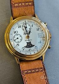 Reporter,orologio cronografo a carica automatica. Movimento swiss made. funzioni: ore, minuti,secondi,secondi e minuti cronografici,datario e fasi lunari.cassa in metallo laminato. Ottime condizioni usato pochissimo, perfettamente funzionante,