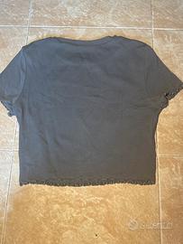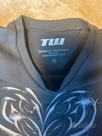 Colore grigio scuro con stampa tridimensionale bianca a forma di cuore con la scritta “TW”