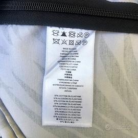 Crop top Michael Kors taglia XS. Fantasia di palme nere su sfondo grigio ghiaccio. In 97% cotone strutturato e 3% elastan, ha due cerniere, una sul fianco e una sulla schiena. Lungo 43,5cm, le spalle misurano 38,5cm. Molto bonito e in condizioni perfette 🌴