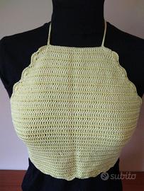 Crop top fatto a mano con uncinetto in filato cotone 100%. Disponibile anche in giallo o in altri colori su richiesta. Uno €18, due 30 €