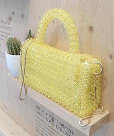 Crystal bag - Borsa gioiello da sera o da cerimonia in cristalli e perline gialle. Interamente fatta a mano. Pratico manico in cristalli e perline. Completa anche di tracolla dorata. Foderata con fodera gialla cucita a mano. Ideale per matrimoni o eventi.