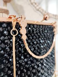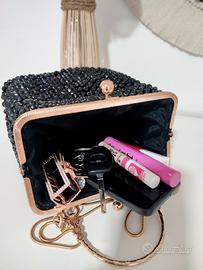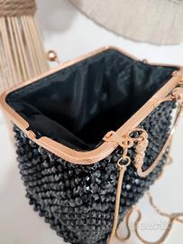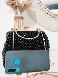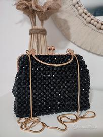 Borsetta bauletto da sera o da cerimonia in perline nere. Interamente fatta a mano.