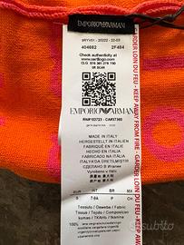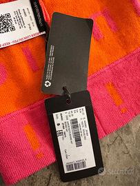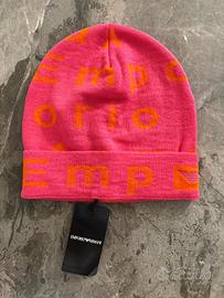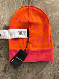 Cuffia Emporio Armani rosa e arancione, 100% lana, nuova con cartellino