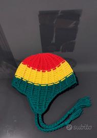 Vendo la mia cuffia Neff originale per inutilizzo. È un modello con i colori verde, giallo e rosso, caratterizzato dalla classica lavorazione a maglia del brand.