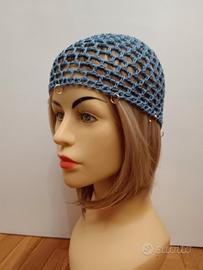 Cuffia rete celeste con anellini al bordo
