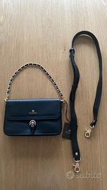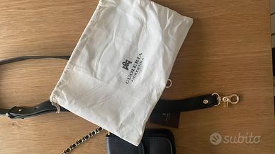 Catena: rimovibile in metallo colore oro intrecciata in pelle.