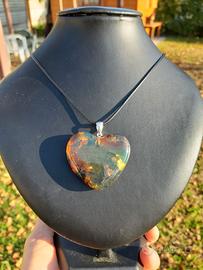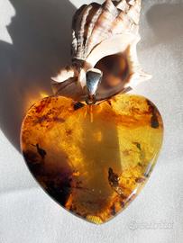 ambra lavorata a forma di cuore con gancio in argento 925.