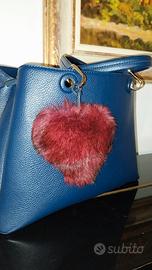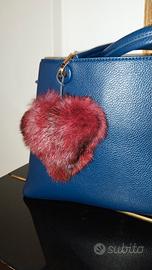 Cuore in pelo rosso e nero con cordino in cuoio. Accessorio adatto a borse e zaini di tutti i tipi. Pelo morbido e di qualità vero, lavorato artigianalmente.
