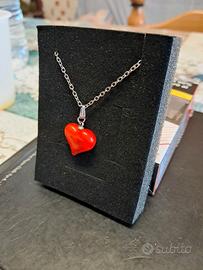 Collana in acciaio inossidabile con ciondolo a forma di Cuore Rosso♥️ realizzata totalmente a mano con la tecnica della lavorazione al lume usando vere canne di vetro di Murano.