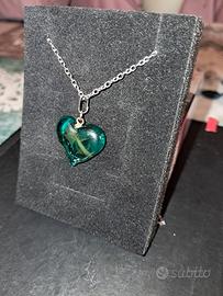 IDEALE PER SAN VALENTINO Collana in acciaio inossidabile con ciondolo a forma di Cuore Verde Smeraldo 💚realizzata totalmente a mano con la tecnica della lavorazione al lume usando vere canne di vetro di Murano. Poiché non vengono utilizzati stampi l'oggetto potrebbe essere di qualche millimetro diverso da quello in foto o può cambiare leggermente la tonalità di colore. Possibilità di realizzarli su misura,variante di colore e accessorio:orecchini perle per bracciale o altro.