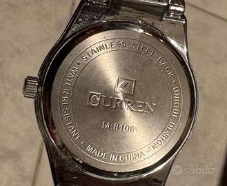 Orologio da polso Curren con movimento al quarzo, cassa con corona e cinturino in acciaio, quadrante colore bianco. L'orologio sembra funzionante, ma vendo la batteria scarica non posso darne certezza, per questo viene venduto come non funzionante o pezzi di ricambio. condizioni estetiche come da foto.