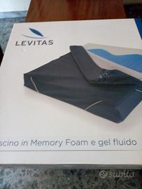 Cuscino marca LEVITAS antidecupito in Memory Foam e gel fluido per carrozzina e per seduta su poltrona o divano.