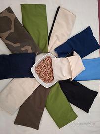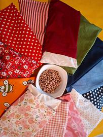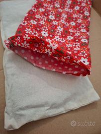 Il cuscino è completamente naturale, realizzato con noccioli di visciole raccolte nel nostro viscioleto, puliti, lavati, essiccati, selezionati e inseriti in un sacchettino di cotone con fodera in cotone, estraibile e lavabile. Confezionato a mano, pertanto ogni cuscino è unico, la dimensione e il peso possono dunque variare. La dimensione è compresa tra i 20/28 cm di lunghezza e 14/15 cm di larghezza, mentre il peso può oscillare tra i 200 e 300 grammi. Quantità limitata. Fantasie stoffe o tinte unite a scelta tra quelle proposte, finchè possibile. INDICAZIONI D’USO RISCALDAMENTO per IMPACCO CALDO: inserire il cuscino nel forno a microonde per 3 minuti a 800 W oppure nel forno normale a 150° per 10/15 minuti a seconda della temperatura del forno. Dopo il riscaldamento il cuscino può rilasciare odore di noccioli. INDICATO per lenire il dolore cervicale, di spalle, mal di schiena, artrite, dolore alle ginocchia, dolori addominali. Utile per riscaldare il letto o il corpo. RAFFREDDAMENTO per IMPACCO A FREDDO: inserire il cuscino in una busta di plastica per evitare che il tessuto si bagni e tenerlo in freezer per almeno 3 ore prima dell’utilizzo. INDICATO per infiammazioni, contusioni, distorsioni, febbre alta, punture d’insetti, raffrescamento estivo. Inoltre può essere utilizzato come antistress, gioco manipolativo o compagno di nanna per bambini poiché assorbe la temperatura corporea risultando piacevole tenerlo vicino. E’ anche una originale idea regalo.