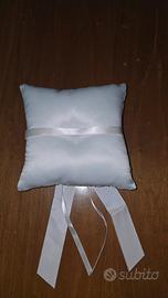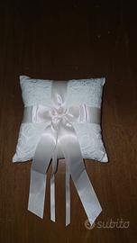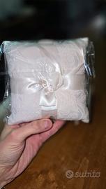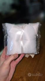 Vendo Cuscino portafedi nunziali in ottimo stato! la custodia di cartone è leggermente schiacciata, ma il cuscino al suo interno è perfettamente intonso, pulito e bianco. Ancora nel suo cellophane originale.