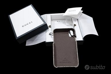 Vendo custodia originale Gucci per iPhone XS, modello GG Supreme, realizzata in iconico canvas GG beige/ebony con dettagli in pelle marrone. Accessorio elegante e senza tempo, ideale per chi cerca un prodotto di lusso autentico.