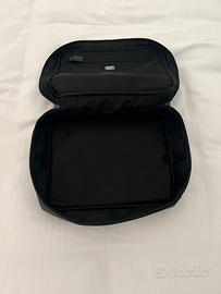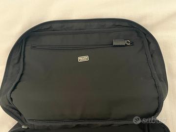 custodia semi rigida imbottita Prada originale in tessuto vela trousse a cofanetto porta orologi, gioielli, reggiseni, intimo, oggetti delicati etc. chiusura a cerniera con due zip esterne, tasca interna con cerniera colore nero