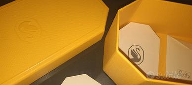 •Scatola 20X9X7 cm circa, rigida ottagonale di colore giallo con logo Swarovski in rilievo