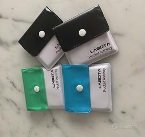 Custodia in eco pelle di alta qualità Cable Technologies creata appositamente per IQOS 3/3 DUO, un ottimo organizer che garantisce una straordinaria protezione del dispositivo, calza perfettamente la IQOS lasciando libero accesso a tutte le connessioni e le funzionalità, realizzata con Eco-Pelle, color rosa, di elevata fattura in finitura "Soft Touch" antiscivolo e gradevole al tatto, studiata nei minimi dettagli per creare un connubio perfetto di qualità e praticità, dimensioni cm 6x12 profonda 5, nuova mai usata, e Confezione da quattro posacenere tascabili/portatili per cenere di sigaretta LABOTA, in PVC ignifugo inodore, due neri, uno verde ed uno azzurro, dimensione 8.3cm x 7.5cm, nuovi mai usati, possibile anche ritiro a mano a Milano, zona Niguarda, con la formula visto e piaciuto