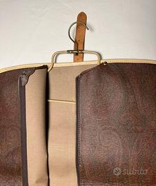 Portabiti/custodia da viaggio di Etro anni '90 realizzato nella classica fantasia paisley in tela rivestita e profili in cuoio.