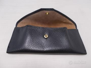 CUSTODIA PORTAOCCHIALI "VINTAGE" Versatile ed elegante, questo portaocchiali in pelle si distingue per essere compatto e sottile quando necessario, oppure più ampio e capiente quando serve. Un accessorio pratico, pensato per adattarsi a ogni esigenza quotidiana. Questa morbida pelle con interno scamosciato, viene bottalata per ottenere una grana uniforme. La notevole pienezza e rotondità della mano lo rendono perfetto per tutti gli usi. Dettagli esterni: logo stampato "ANTICA 1935 PELLETTERIA" Chiusura: bottone a pressione Colore : nero/marrone Altezza prodotto 8 cm circa Larghezza prodotto 18 cm circa Peso Gr.65 circa PRODOTTO SENZA CONFEZIONE ORIGINALE PRODOTTO COME NUOVO